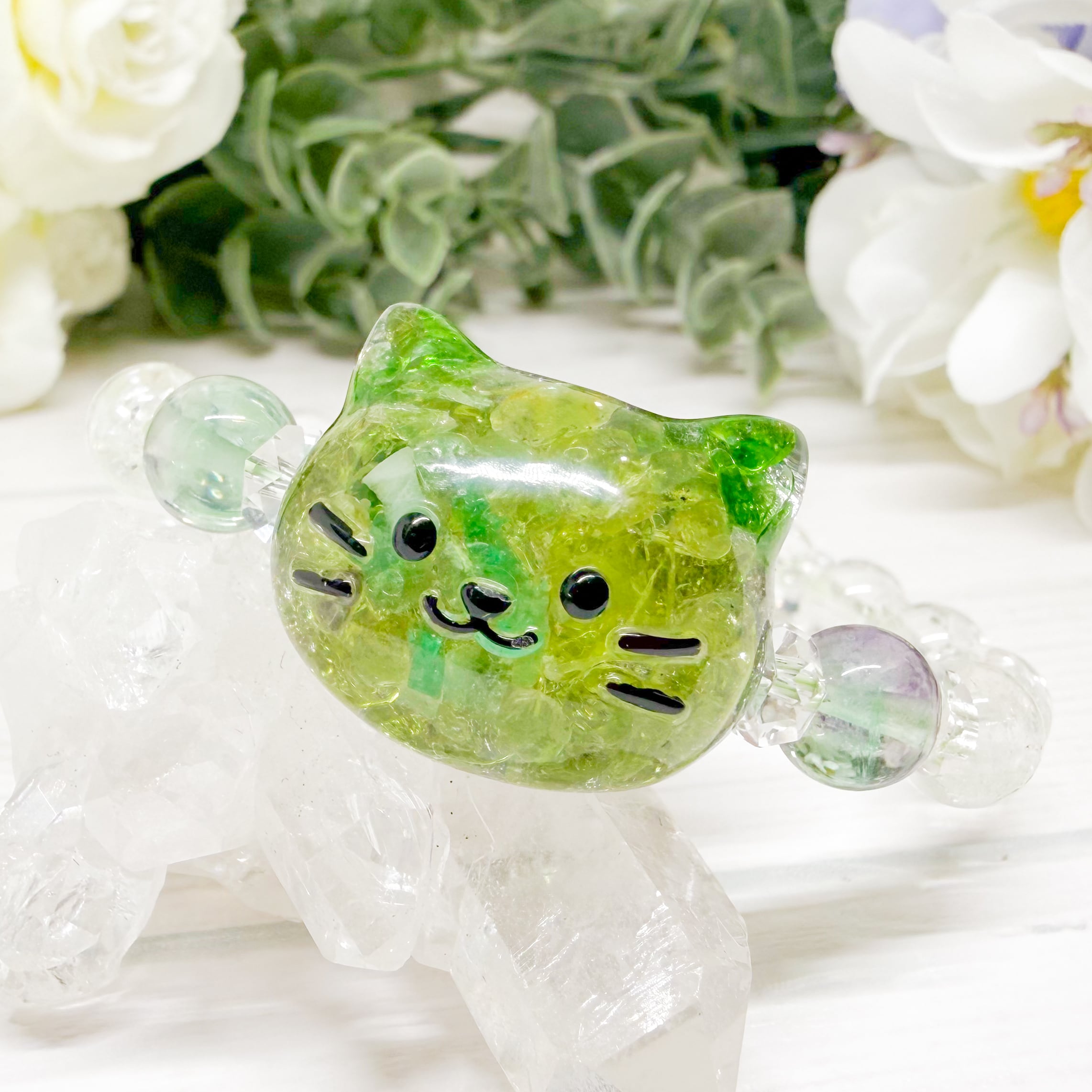 癒しのみどり猫オルゴナイトブレスレット